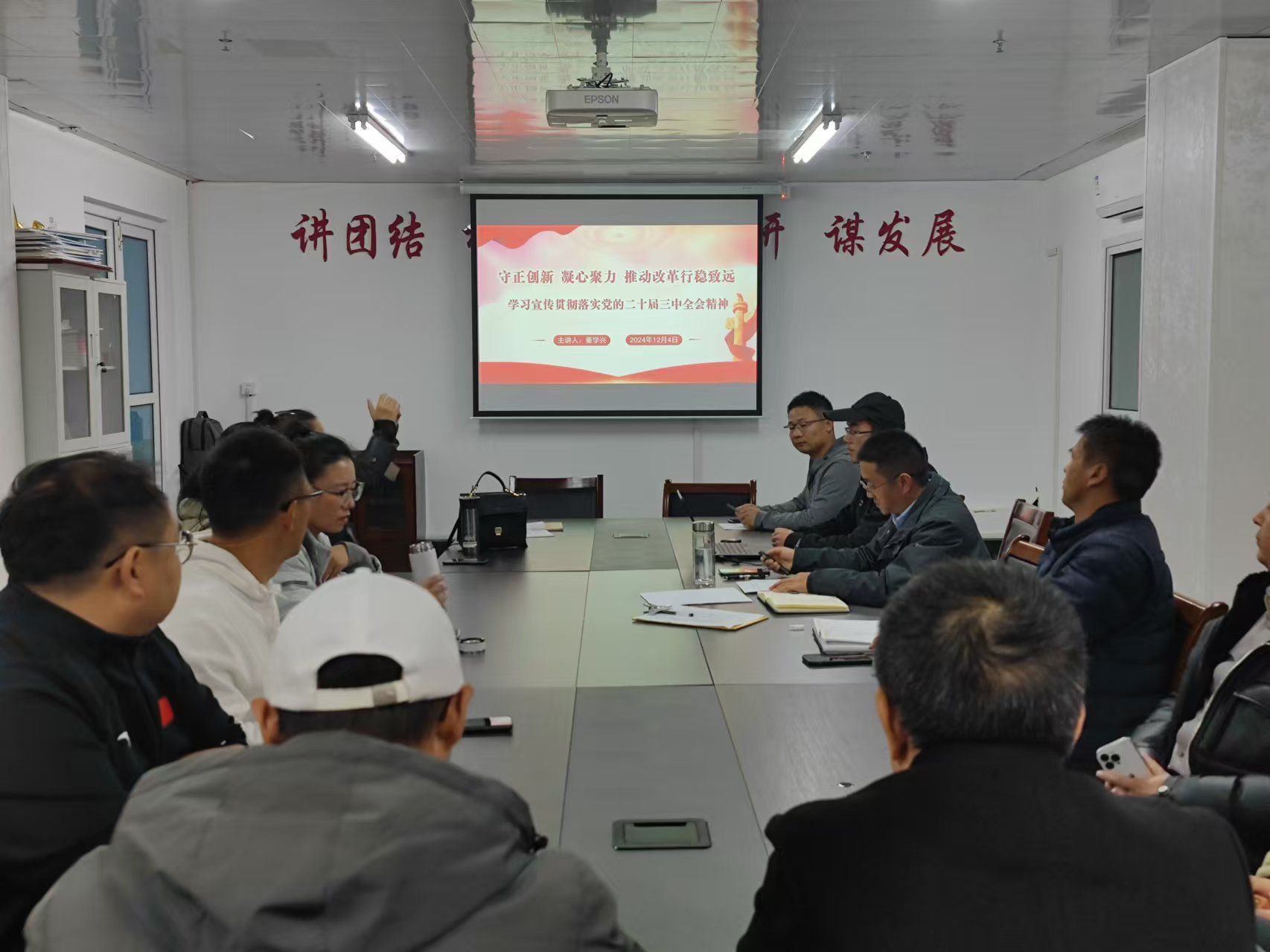 12月4日下午,公司党总支在风雨操场会议室开展学习贯彻党的二十届三中全会精神专题党课,公司党总支书记董学兴主讲,全体党员参加。